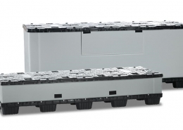 Flexibelt retursystem: robust pall, lock och valbara kragar för långvarig användning.