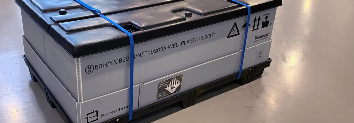 Wellplast AB har efter sin tidigare erfarenhet av UN-certifierade packningslösningar för farligt gods nu breddat sitt utbud av produkter för hantering av nya och använda batterier.