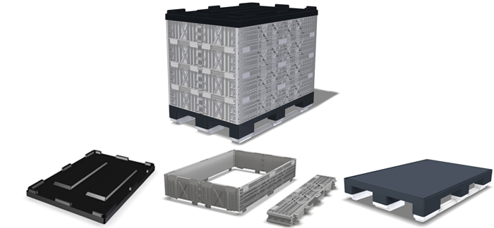 Konceptet bygger på en gemensam plattform av en plastpall och lock som valfritt kan kombineras med kragar eller svep. Plastpallen och alla komponenter är mycket robusta och är avsedda att användas under lång tid i retursystem. Det är ett flexibelt system där kragar används för tung last och svep för lättare transporter. Den patenterade pallkragen ger förbättrad ergonomi och gör hanteringen väsentligt effektivare än övriga lösningar på marknaden.